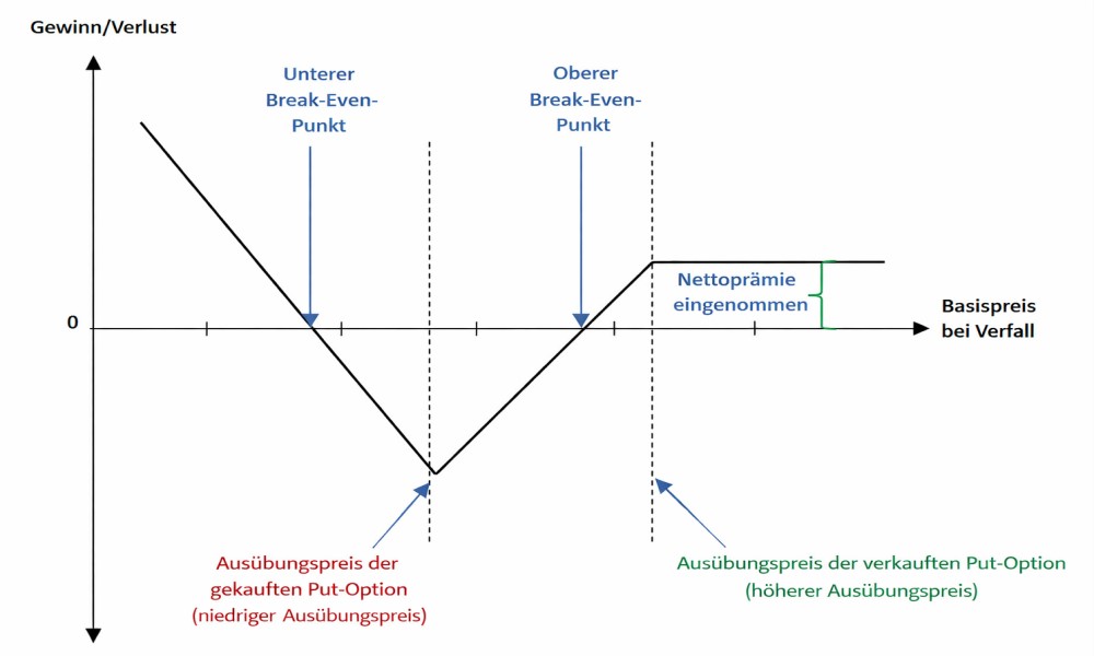 👉 und nahe beim Strike der gekauften Puts endet